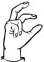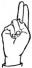 На ћирилици написано ЛАБУДА КЕЗИЋ састоји се из 11 слова [?]. Исписано ћириличном једноручном азбуком за глувонеме: